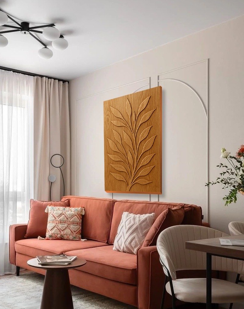 This metal wall art features an elegant leaf pattern sculpted in deep black relief, creating flowing lines that catch the light and cast subtle shadows. The minimalist botanical design adds texture, sophistication, and a modern nature-inspired touch to living rooms, bedrooms, hallways, or office spaces.